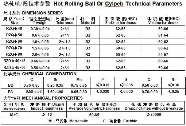 熱軋球/段技術(shù)參數(shù)
